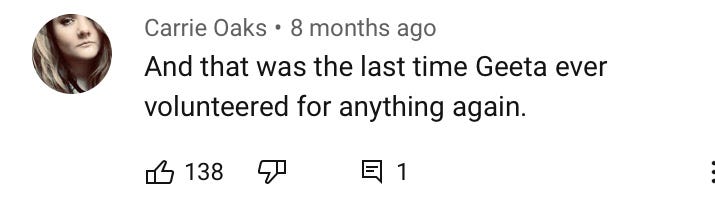 I've watched this video so many times, and I know what to expect, Diana's shtick, Geeta's graceful hesitance, and it all leads to further questions that are never answered within the context of the video. Where are they? How did Geeta stumble into Diana's clutches? How does the neck become free?